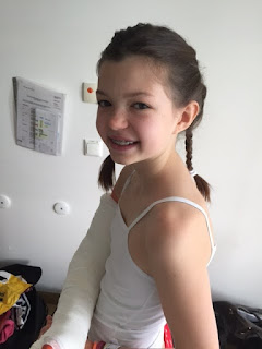 -In March Izzy fell off her scooter and dislocated and broke her elbow. This is the same elbow she broke when she was a baby so it was vulnerable. Our insurance company does not have a contract with the hospital here so they flew Izzy and I to Munich where she underwent a very complicated surgery. Thankfully it was a success and now she is going through physical therapy. In July we will return where she will have her 2nd surgery. I was so impressed with her attitude the whole time. She kept reminding herself (and me) that God works out everything for the good for those who love Him. Even as they wheeled her back to surgery she was smiling and at peace. She is truly an inspiration!